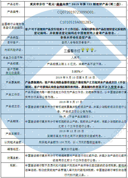 2019年第723期理财产品说明书