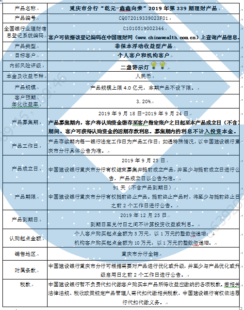 2019年第339期理财产品说明书