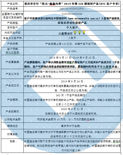 3.中国建设银行重庆市分行可根据市场情况等调整产品规模上、下限,并最迟于调整规模上下限当日进行公告。