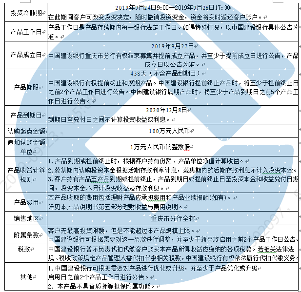 1.本产品不保障本金和收益安全,中国建设银行重庆市分行发行本产品不代表对本产品的任何保本或收益承诺。