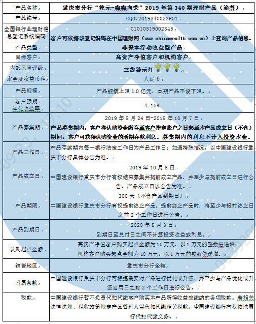 2019年第340期理财产品说明书