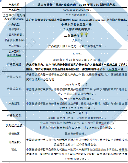 2019年第346期理财产品说明书