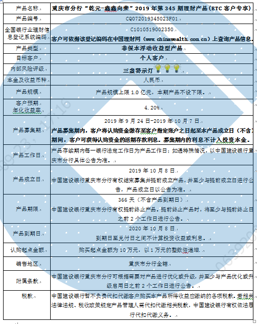 3.中国建设银行重庆市分行可根据市场情况等调整产品规模上、下限,并最迟于调整规模上下限当日进行公告。