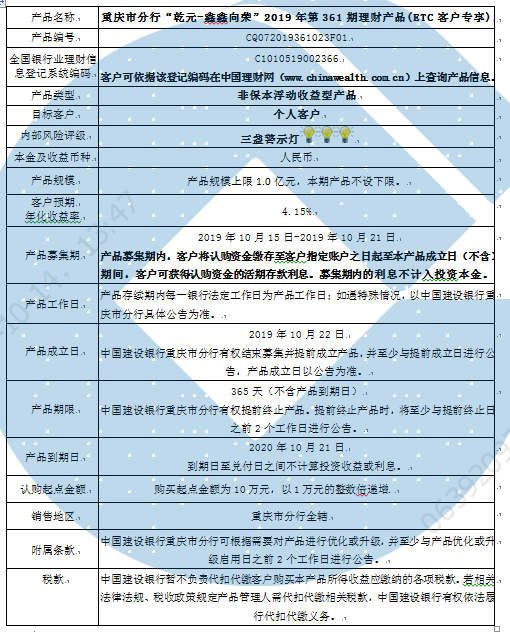 3.中国建设银行重庆市分行可根据市场情况等调整产品规模上、下限,并最迟于调整规模上下限当日进行公告。