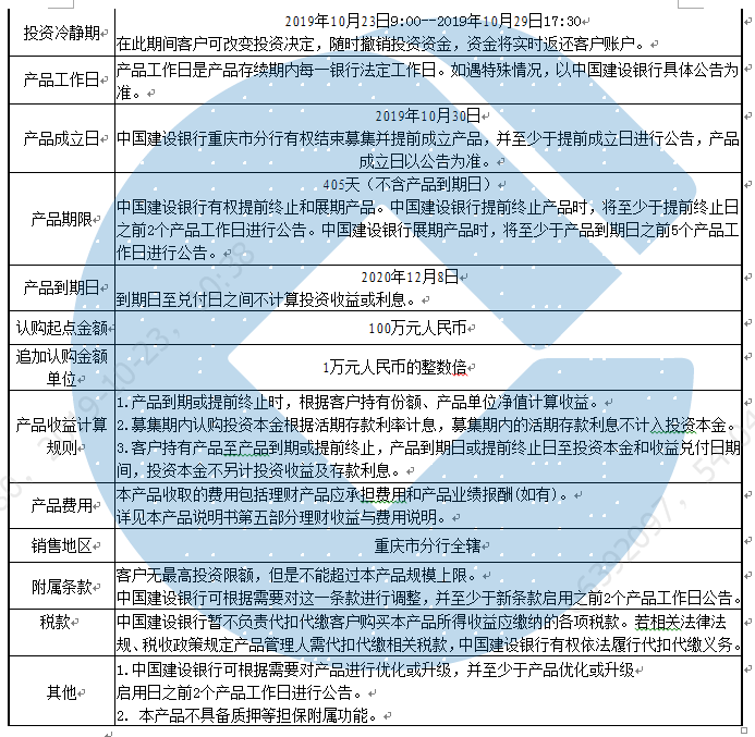 1.本产品不保障本金和收益安全,中国建设银行重庆市分行发行本产品不代表对本产品的任何保本或收益承诺。