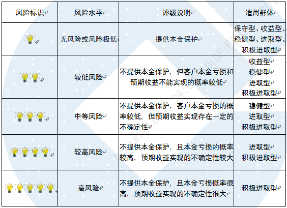 本产品为非保本浮动收益型理财产品,不保证本金和收益,请您充分认识投资风险,谨慎投资。本期产品期限为184天(中国建设银行有权对产品进行展期或提前终止),存续期内,产品不接受申购或赎回申请。本期产品内部风险评级级别为三盏警示灯,风险水平属于中等风险。最不利情况下,您将损失全部收益甚至包括全部本金。本理财产品适用于稳健型、进取型 、积极进取型客户。