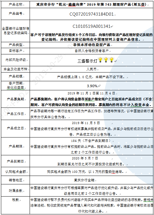 3.中国建设银行重庆市分行可根据市场情况等调整产品规模上、下限,并最迟于调整规模上下限当日进行公告。