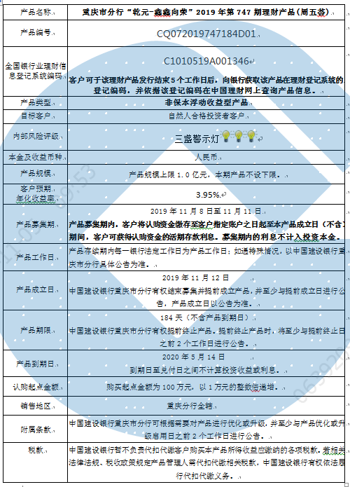 2019年第747期理财产品说明书
