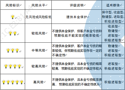 本产品为非保本浮动收益型理财产品,不保证本金和收益,请您充分认识投资风险,谨慎投资。本期产品期限为365天(中国建设银行有权对产品进行展期或提前终止),存续期内,产品不接受申购或赎回申请。本期产品内部风险评级级别为三盏警示灯 ,风险水平属于中等风险。最不利情况下,您将损失全部收益甚至包括全部本金。本理财产品适用于稳健型、进取型 、积极进取型客户。