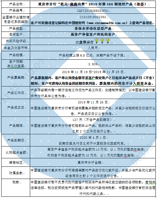 2019年第388期理财产品说明书