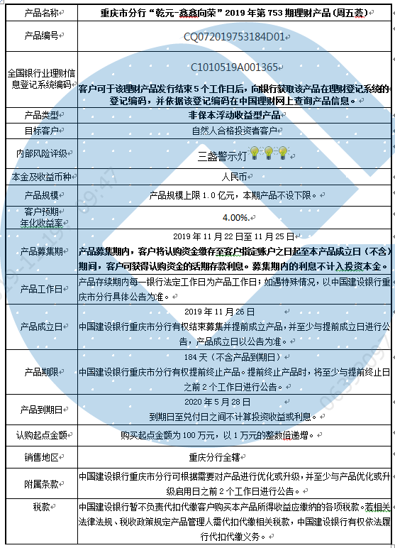 2019年第753期理财产品说明书