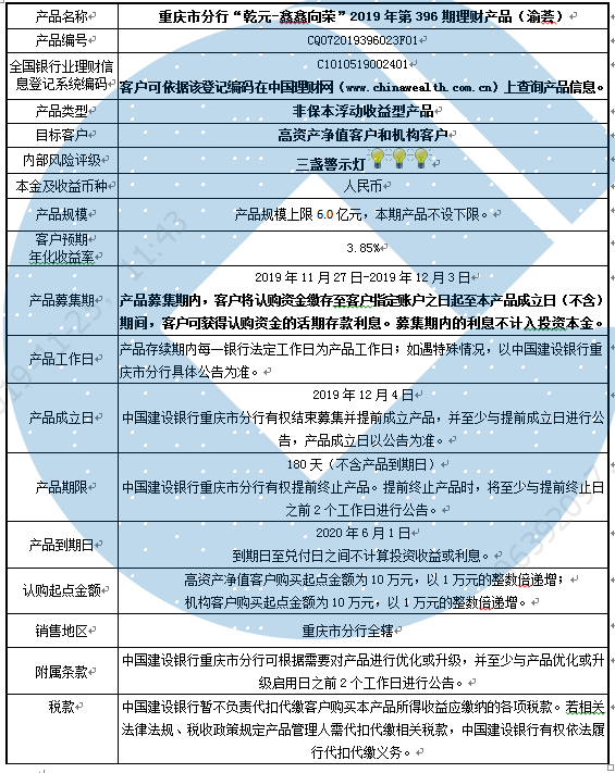 2019年第396期理财产品说明书