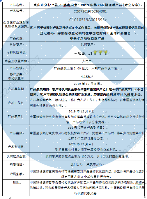 3.中国建设银行重庆市分行可根据市场情况等调整产品规模上、下限,并最迟于调整规模上下限当日进行公告。