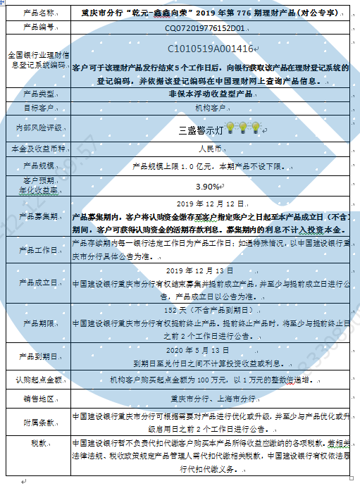 3.中国建设银行重庆市分行可根据市场情况等调整产品规模上、下限,并最迟于调整规模上下限当日进行公告。