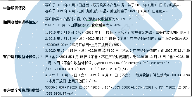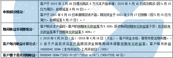 假设客户投资本金5万元,实际参与理财的天数20天,实际年化收益率5.00%。
