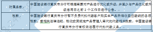 1.如遇国家金融政策出现重大调整并影响到本产品的正常运作时,中国建设银行重庆市分行有权利但无义务提前终止本产品。