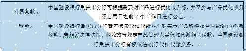 1.如遇国家金融政策出现重大调整并影响到本产品的正常运作时,中国建设银行重庆市分行有权利但无义务提前终止本产品。