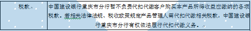 在本产品运作过程中涉及的各纳税主体,其纳税义务按国家税务法律、法规执行。本产品运营过程中发生的增值税行为,由中国建设银行重庆市分行申报和缴纳增值税及附加税费,税款由本产品资产总值中扣除。
