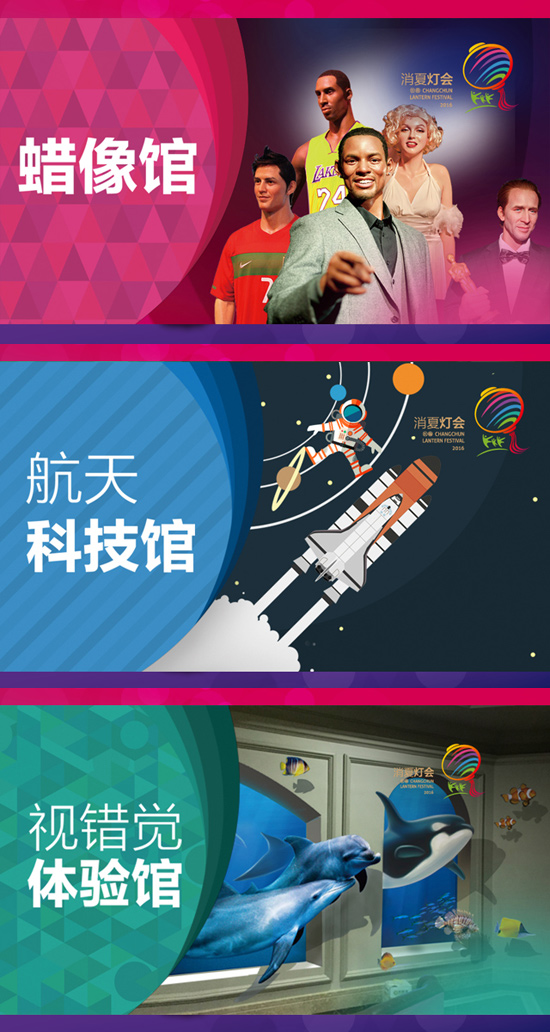 灯会期间引进各类特色展览,如经典名人蜡像展,让您有机会和明星名人进行零距离接触;3D视觉艺术展,实现人与场景的奇幻互动,给游客带来震撼奇趣的视觉冲击,军事航空科技展,让孩子们在观展的同时,体验科学寓教于乐。