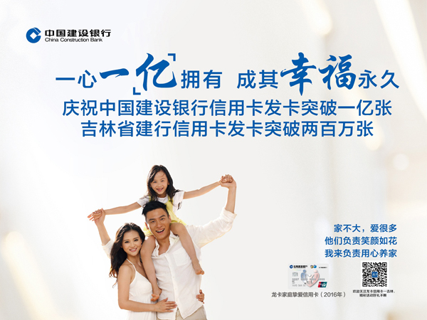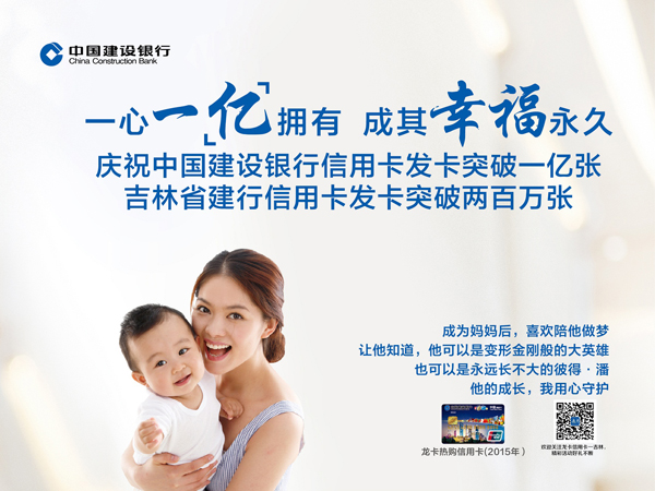 功崇惟志,业广惟勤。站在发卡一亿张的新起点,建设银行将始终把握创新发展脉搏,聚焦客户需求,以先进的经营理念、一流的客户服务、强大的风险控制力,走在时代变革前沿,不忘初心,一心一意,致力于打造客户服务最佳、客户最满意、最具价值创造力信用卡品牌,以卓越的消费金融综合服务为亿万持卡人畅享幸福生活而矢志奋力前行!