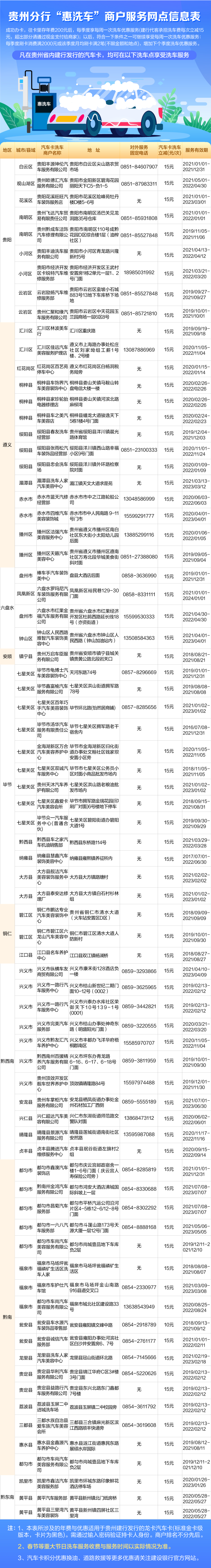 贵州龙卡汽车卡洗车商户信息