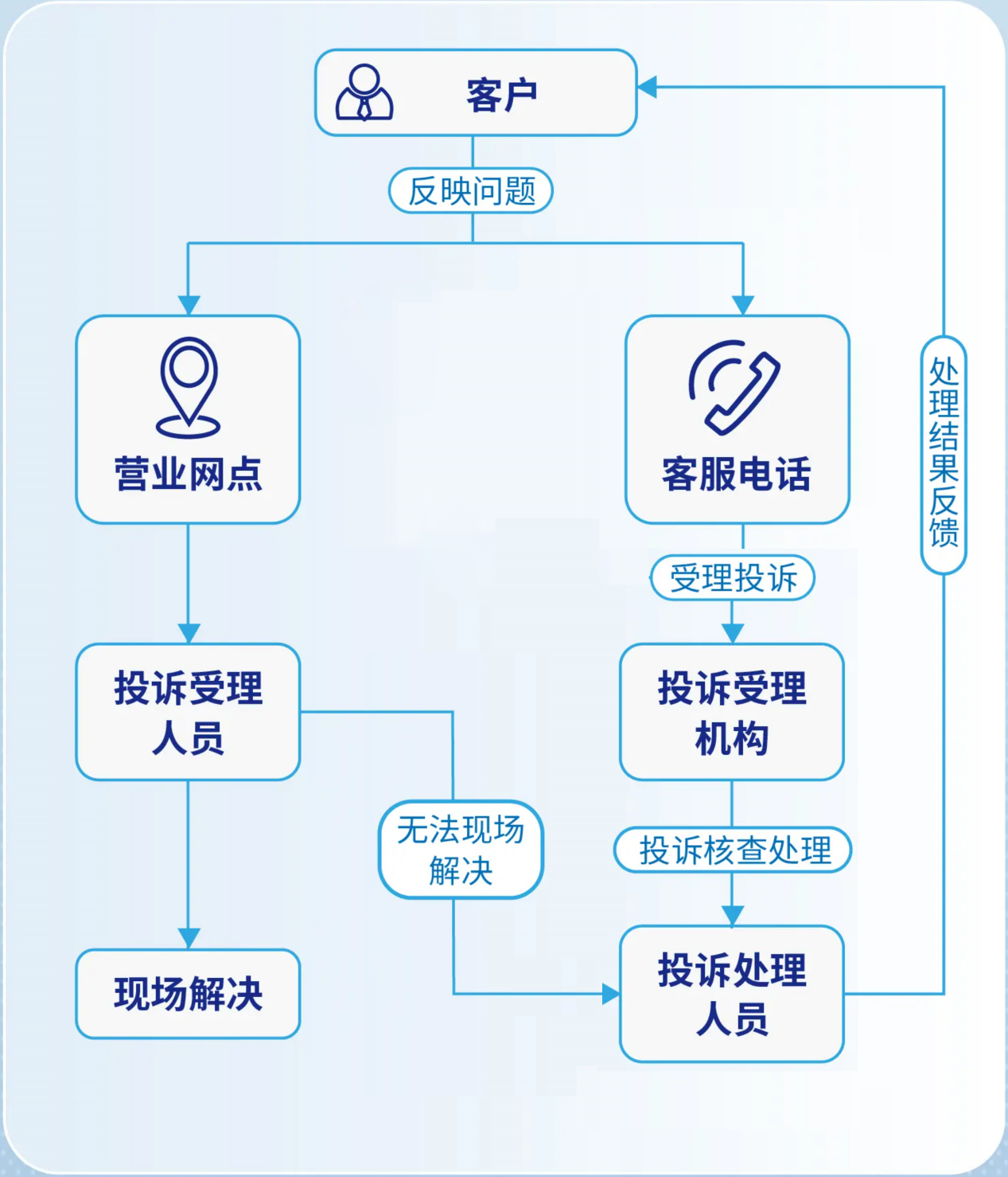 为了更好的响应客户诉求,及时妥善处理客户投诉及疑难问题,现将我行投诉受理方式及处理流程公布如下,如您遇到疑难问题可优先选择。