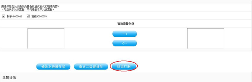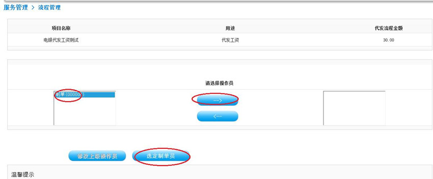 选中制单员,点击“-->”按钮,再点击“选定制单员”。