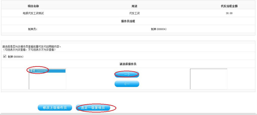 在“请选择要增加代发流程的账户”勾选您的企业账户,并在右侧输入“流程金额”,输入交易密码。注意:用途需选“网银代发”