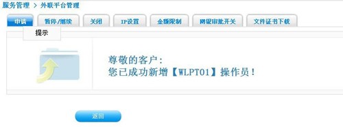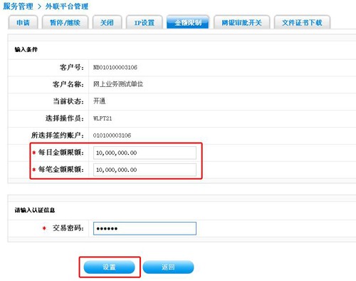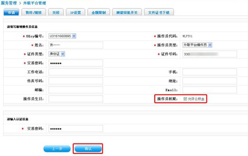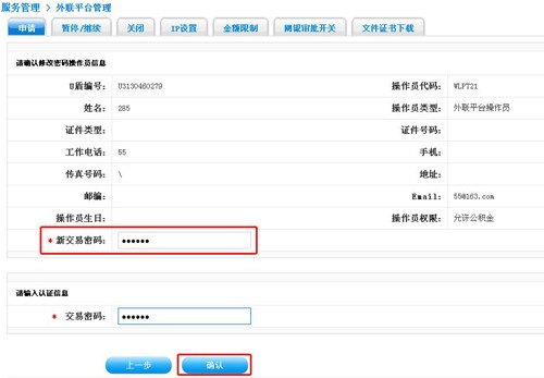 1、宁波住房公积金软件 2、企业客户E路护航网银安全组件 3、20140704网上业务年审程序更新(具体操作方法:年审程序的安装请点击>>>) 新客户从第一大点开始操作,原先使用过的老客户从第三大点(本地“外联平台配置”)开始操作 一、登录建行企业网上银行 ![]() 第一步:先将标示为“主管”的网银盾接入电脑USB口,在IE地址栏输入https://b2b.ccb.com (注意: 录入网址时https 不可录入为 http)。 第二步:选择“主管”网银盾对应的证书号,点击“确认” ![]() 第三步:系统会弹出“验证USB KEY口令”,输入网银盾口令,如下图。 ![]() 点击“确认”,进入登录界面。 第四步:登录页面如下图,输入主管登录密码。 ![]() “客户识别号”和“操作员代码”(主管操作员代码为999999)为系统反显,只需输入“登录密码”。主管初始登录密码为999999,点击“登录”进入页面如下: ![]() 点击“进入操作页面”,进入企业网银操作页面。 二、外联平台操作员设置 第一步:点击“全部功能”展开菜单,点击“服务管理—外联平台管理”进入外联平台设置界面。 ![]() 第二步:点击“新增”按钮,进入操作员信息录入界面,如下图。打“*”为必填信息,其中,需注意勾选操作员权限“允许住房公积金业务”。请牢记此处设置的交易密码,此“密码”即为桌面“外联平台配置”时需填写的操作员密码,也是“公积金网上业务”登陆时的交易密码,交易密码必须是6位数字字符。Ukey编号为操作员u-key背后的号码,请核对;操作员代码自动生成,第一次为WLPT01,字母大写;姓名为操作员的姓名,5个汉字以内。确认之前必须输入主管的交易密码,也是999999。 ![]() 点击“确定”后页面提示已成功新增操作员,点击“返回”。 ![]() 第三步:如下图所示,点击“账户权限”对点选的操作员进行公积金权限设置。 ![]() 全选公积金操作后,点击“确认”。 ![]() 第四步:点击“服务管理-外联平台管理-金额限制”,点选账户后点击“确定”。目前未开通资金交易,此步骤可以不做操作。 ![]() 填写金额限额,因住房公积金业务不涉及银行转账,金额限制可任意,但日金额限制必须不小于每笔金额限制。 ![]() 第五步:密码修改 外联操作员增设时,已设置初始交易密码,需要更改时,点击“密码维护”即可修改操作员交易密码。注意修改完密码后,需重新点击桌面的“外联平台配置”,并把密码设置成修改后的“交易密码”。 ![]() ![]() 以上便是公积金网上申报系统的外联平台操作员在企业网银上的全部设置流程。 三、本地“外联平台配置” 点击桌面快捷键“外联平台配置”,运行如下图: 客户号:地区代码(宁波-NB,北仑-BL,慈溪-CX,奉化-FH)加上公积金单位账号; 操作员号:WLPT01;以上字母必须大写。 密码:在企业网银上新增操作员时设置的交易密码(6位数字); 端口号:介于1026与65535之间的整数,或者向网管申请。点击“确定”后关闭。 新一代客户:“打勾” ![]() 四、日常业务办理 插入操作员u-key,点击桌面“外联平台”,输入u-key口令,提示外联平台启动成功后点击“住房公积金网上业务”,输入交易密码登陆系统。 |