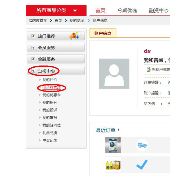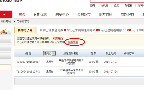 4. 进入互动中心—电子券管理,点击“我要充值”主动获取电子券。