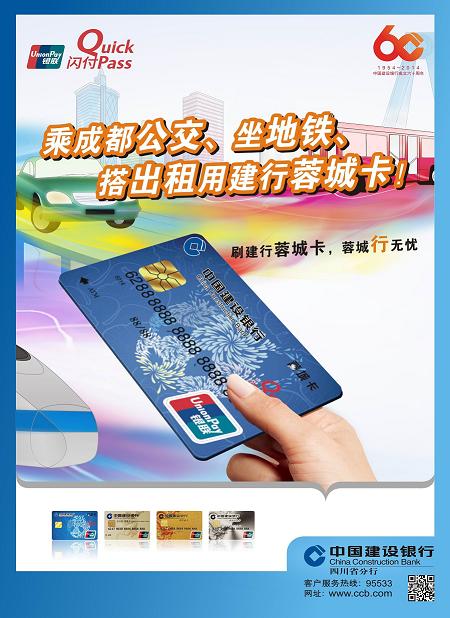 “蓉城卡”是由我行发行的,将交通出行与银行金融业务完美结合的金融IC卡。“蓉城卡”除为持卡人提供存取款、转账、余额查询、POS消费等金融服务外,还可以在成都地铁、成都二环路BRT公交、成都出租车、成都和雅安普通公交车上实现电子现金闪付支付。未来,“蓉城卡”将在机场高速、地面占道停车以及成青快铁上实现刷卡支付。